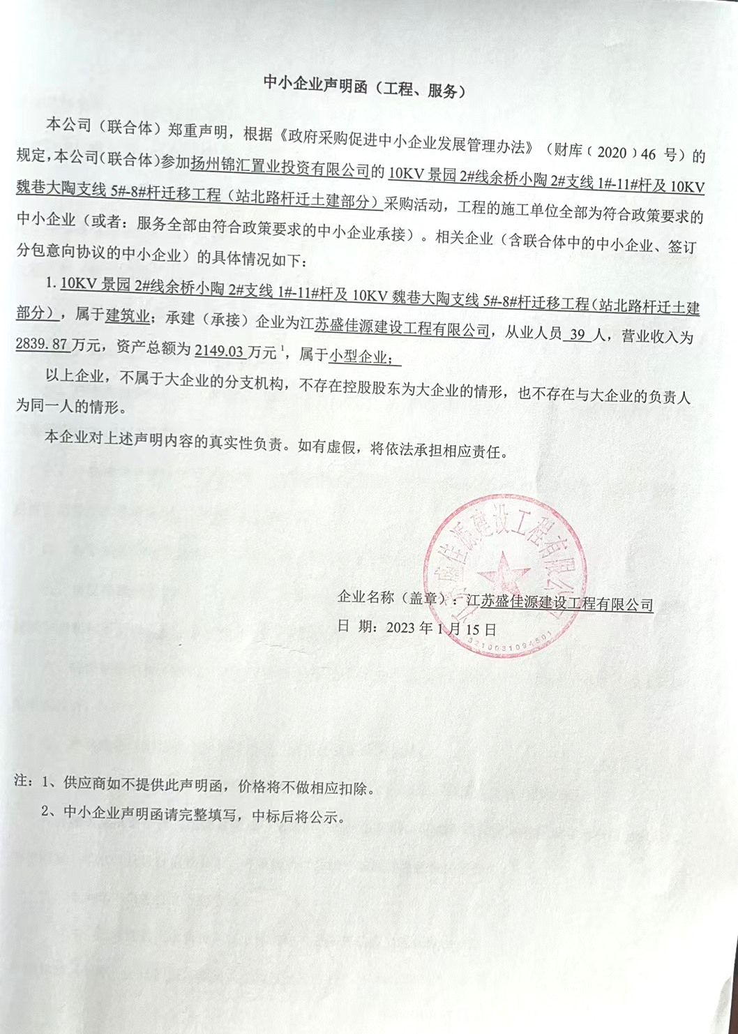 10KV景園2#線(xiàn)余橋小陶2#支線(xiàn)1#-11#桿及10KV魏巷大陶支線(xiàn)5#-8#桿遷移工程 成交結(jié)果公告 一、項(xiàng)目編號(hào):YZZY-20221202 號(hào) 二、項(xiàng)目名稱(chēng):10KV景園2#線(xiàn)余橋小陶2#支線(xiàn)1#-11#桿及10KV魏巷大陶支線(xiàn)5#-8#桿遷移工程(站北路桿遷土建部分) 三、成交信息: 供應(yīng)商名稱(chēng):江蘇盛佳源建設(shè)工程有限公司 供應(yīng)商地址:揚(yáng)州市邗江區(qū)望月路496號(hào) 成交金額:359700元(叁拾伍萬(wàn)玖仟柒佰元整) |